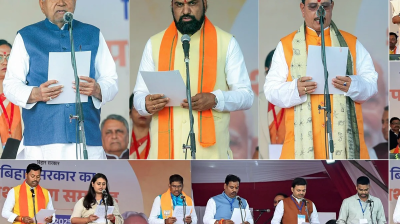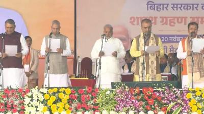 बिहार | बिहार विधानसभा में बहुमत हासिल करने के बाद गुरुवार को पटना के गांधी मैदान में नीतीश कुमार 10वीं बार मुख्यमंत्री पद की शपथ ली. नीतीश कुमार के साथ...