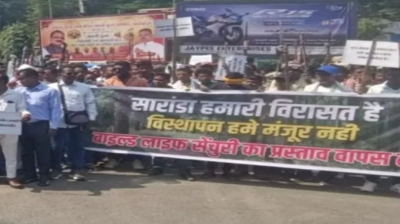 सारंडा सेंचुरी विवाद ने पकड़ा तूल, आदिवासी संगठनों का जोरदार प्रदर्शन, 25 अक्टूबर को कोल्हान में आर्थिक नाकेबंदी का ऐलान