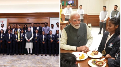 वर्ल्ड कप की हीरोइन्स से PM मोदी की मुलाकात, महिला क्रिकेटरों को अपने हाथों से खिलाई मिठाई