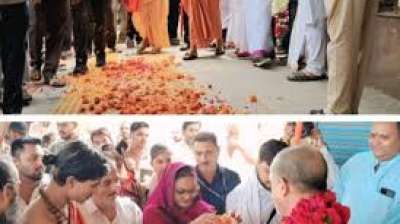 नरसिंहपुर में शंकराचार्य सदानंद सरस्वती का पादुका पूजन के साथ भव्य स्वागत
