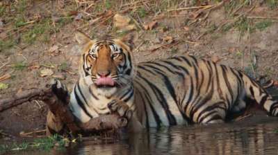 गर्मी में टाइगर की भी परेशानी, मंडला में चिल्ड वाटर पीते हुए दिखे