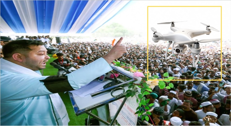 पटना में तेजस्वी की रैली में अनहोनी टली: मंच पर पोडियम से टकराया ड्रोन, बाल-बाल बचे नेता