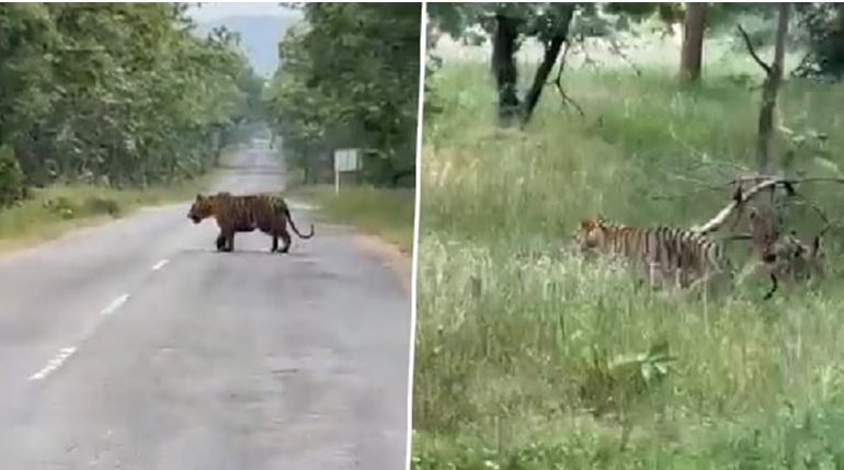 सड़क पर बाघों की एंट्री, वन विभाग ने इलाके में जारी किया अलर्ट