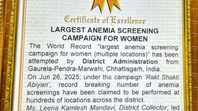 रायपुर : एनीमिया मुक्त भारत कार्यक्रम और बेटी बचाओ-बेटी पढ़ाओ कार्यक्रम को जिले में शामिल करते हुए 26 जून को गौरेला पेंड्रा मरवाही जिले में चलाए गए रक्त शक्ति महा...