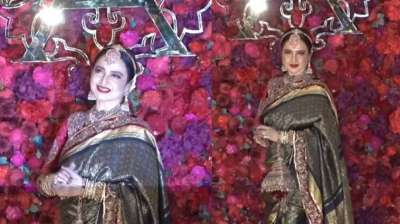 रेखा की खूबसूरत साड़ी ने अदार जैन की शादी में खींचा ध्यान, 20 साल बाद दोहराया लुक